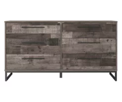 Streamlined design and a stunning finish come together in one simply extraordinary piece. The Neilsville dresser is sure to impress with six smooth-operating drawers, canted metal legs and a rustic butcher block finish over replicated pine grain texture. Its mid-century style is a nod to the past, while the updated finish keeps it solidly in the present.