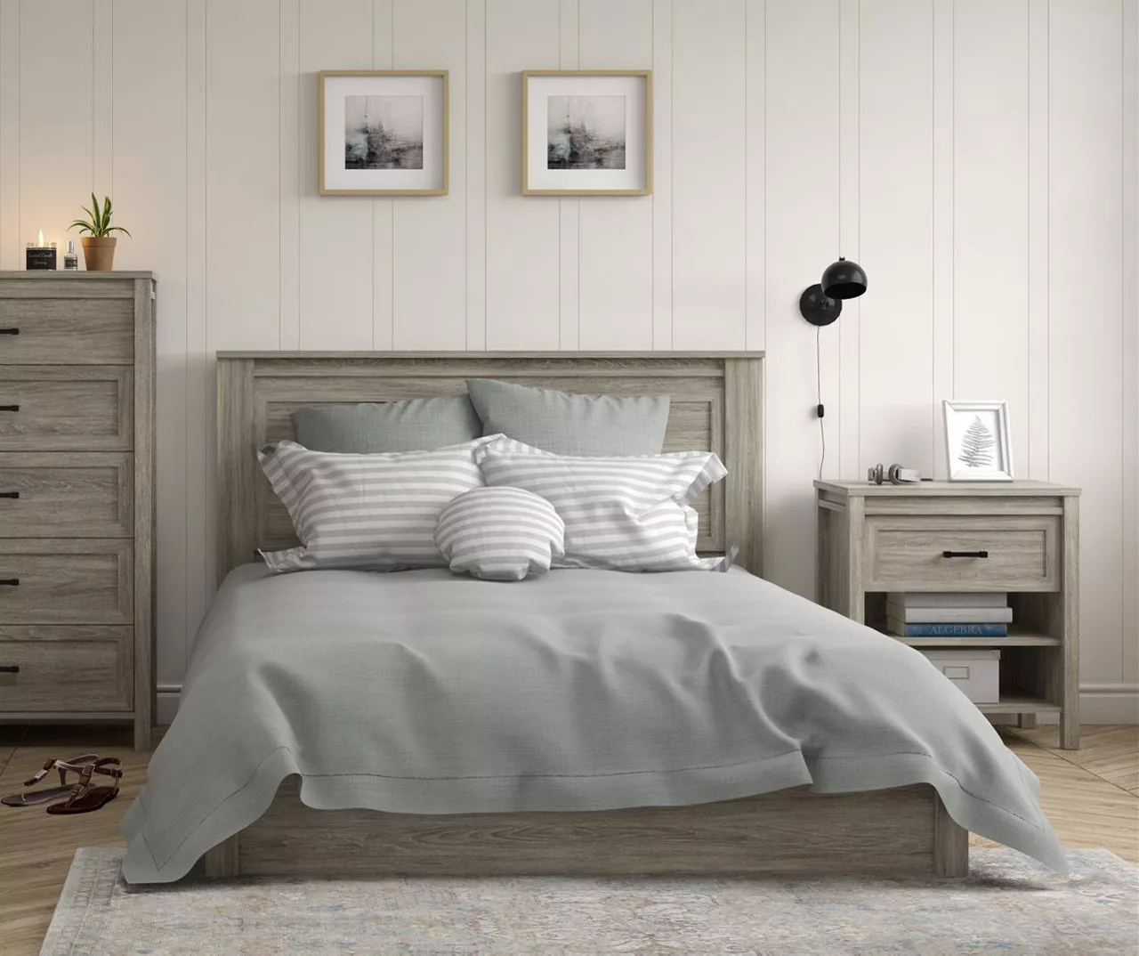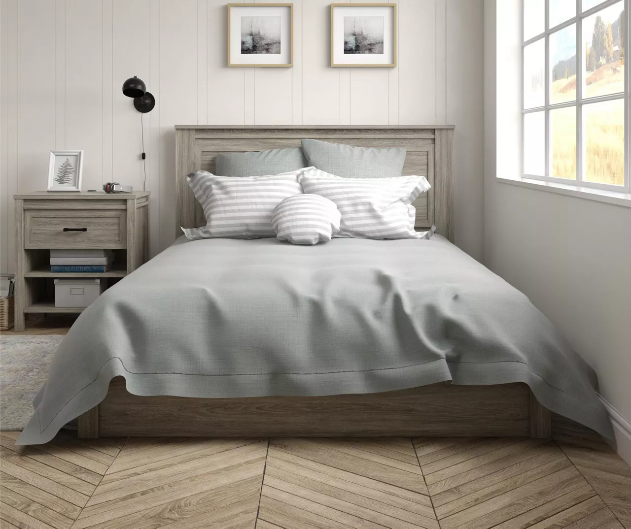 - Beautiful gray woodgrain finish