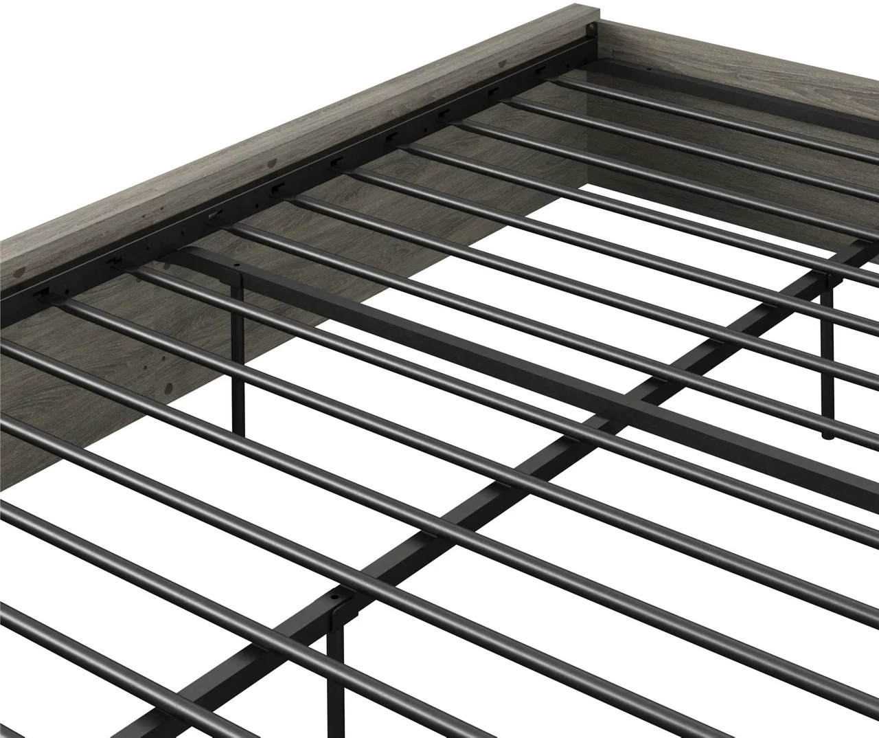 - Metal mattress support bars eliminate the need for a box spring