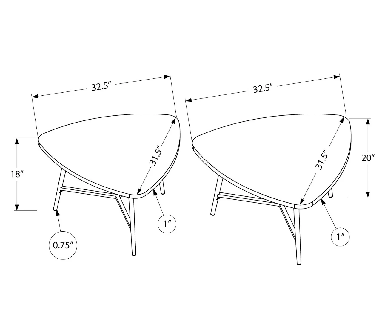 - Features a mid-century modern rounded triangular shape