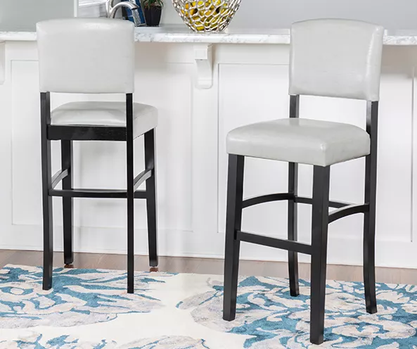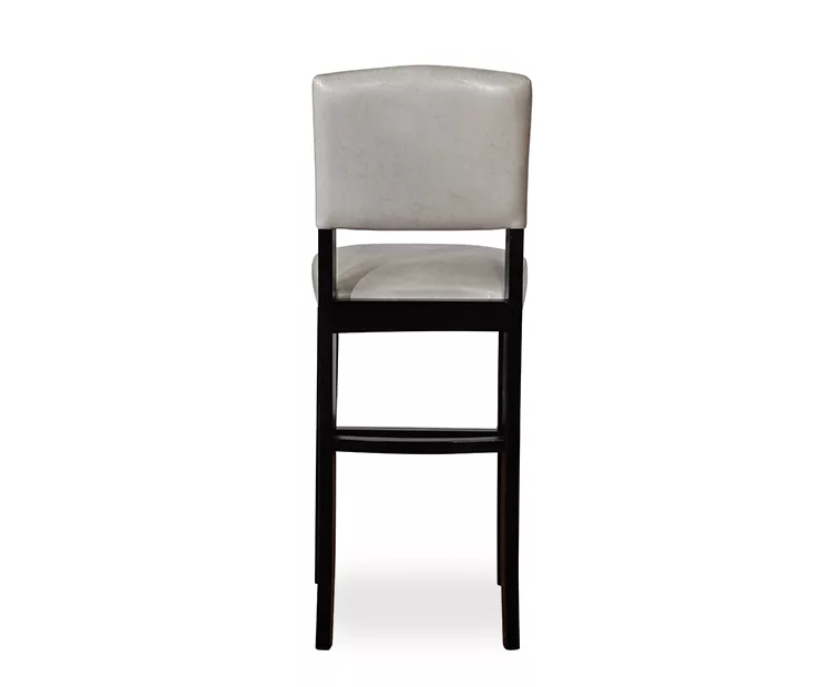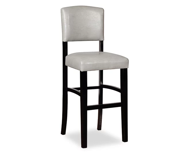 Simple, sleek lines give this bar stool a contemporary look that suits a variety of styles. Dark black finish gleams as it showcases the clean design of this piece while dove gray upholstery lightens the effect. Suitable for most spaces, this stool features padded seating and a foot rest for exceptional comfort.