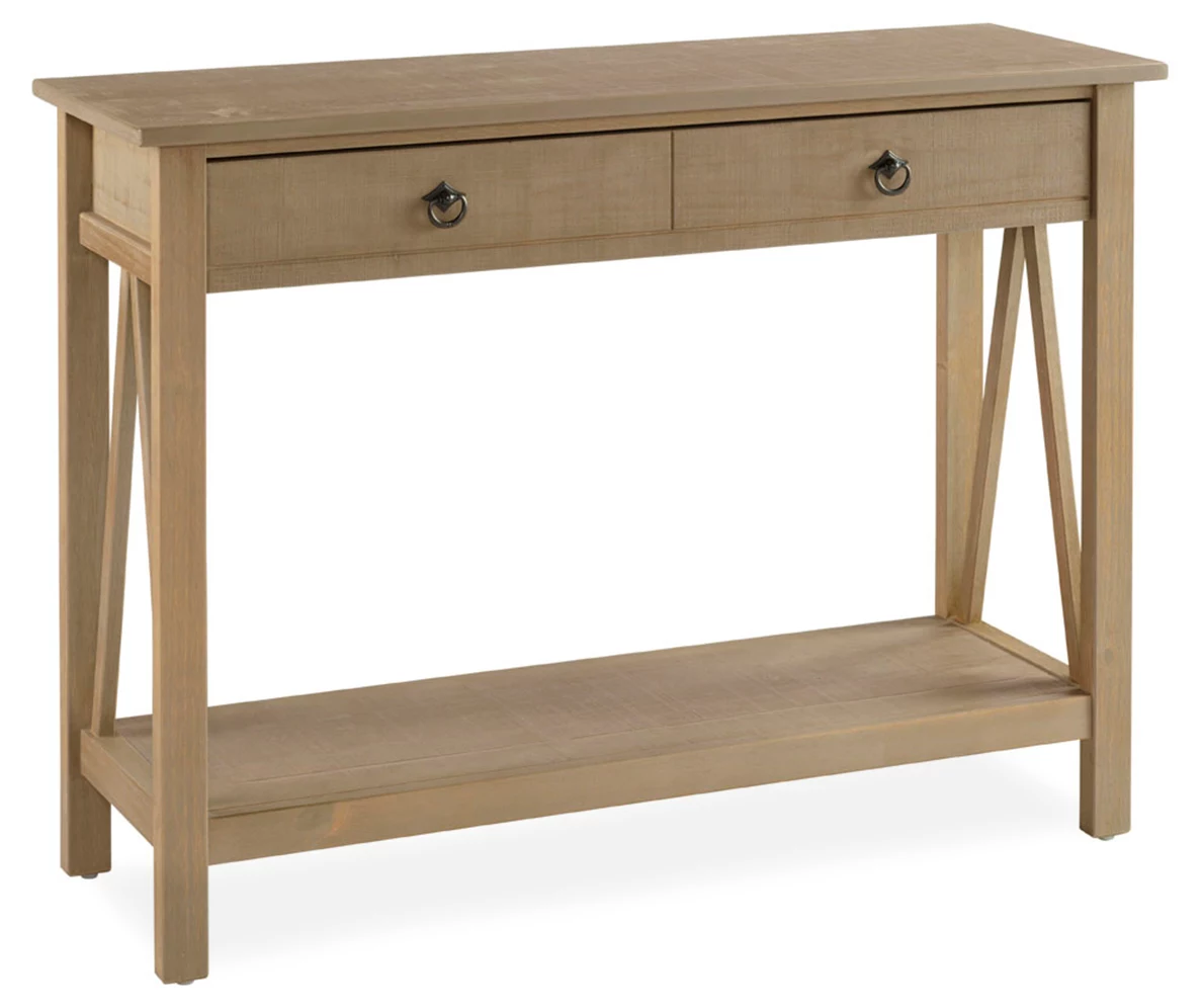 This antique style console table features a compact and simple body that makes it perfect for any space. Two drawers provide ample hidden storage. A neutral, classic dark finish allows this piece to easily complement décor. It’s eye-catching design is matched with incredible durability.