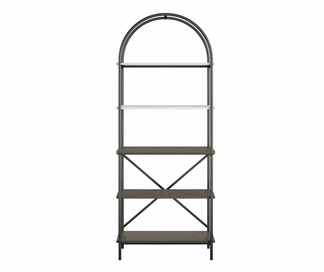 Nab this style for yourself with the CosmoLiving Vivinne bookcase. Arched frame and modern metal legs give this bookcase top-notch design perfect for any fashionista. Obsessorize on the five open shelves that provide ample storage for all of your favorite things. Finished in trendy gray, the bookcase is a space-saving dream come true.
